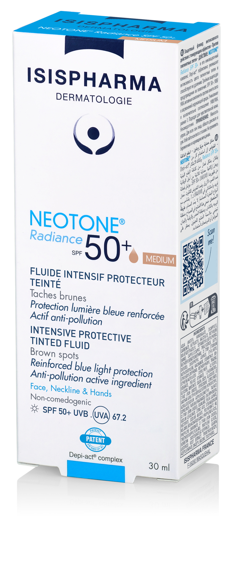 Protejează pielea de efectele nocive ale razelor UV și luminii albastre(melanina fractionata + oxid de fier). Contine complexul DEPI-Act(Diacetyl boldin + inhibitor sintetic de WNT + licorice + niacinamide) cu eficiență în fiecare etapă de formare a melaninei,previne formarea petelor maronii ,protectie anti-poluare. 0% parabeni • 0% fenoxietanol • non-comedogenic. TESTAT SUB CONTROL DERMATOLOGIC