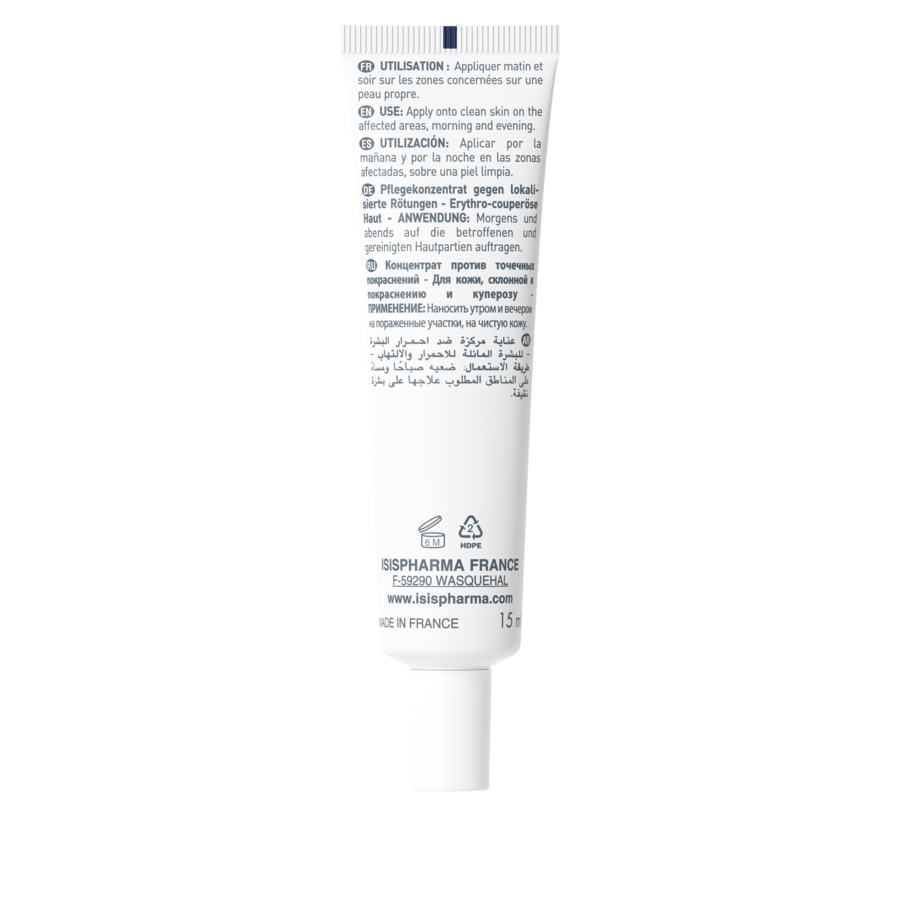 anti-roseata, calmare, reparare, fortifiere si hidratare, actioneaza la sursa formarii vaselor mici vizibile si calmeaza. Ingrediente: [ß-CALM® COMPLEX] (BIOFITEX, VITAMINA B3, BETAINA, BETA-ACID GLICIRETINIC), DERIVATI BIOTEHNOLOGICI AI ACIZILOR VEGETALI. 0% PARABENI • 0% FENOXIETANOL • FARA PARFUM • HIPOALERGIC. TESTAT SUB CONTROL DERMATOLOGIC