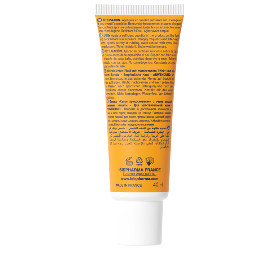 Ingrediente: Complex Sunstress protect: combinatie optima de filtre solare UVA/UVB, extract din flori de Sophora Japonica, Ectoina. Fara parfum. Fara alcool. Hipoalergic. Non-comedogenic. Rezistent la apa . Fotostabil.TESTAT SUB CONTROL DERMATOLOGIC